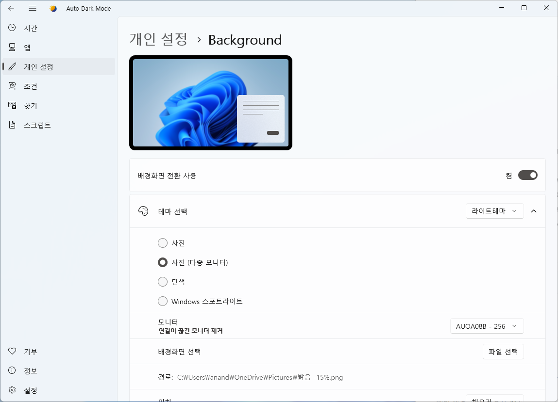2단계) 바탕화면도 따라서 자동 바꾸기