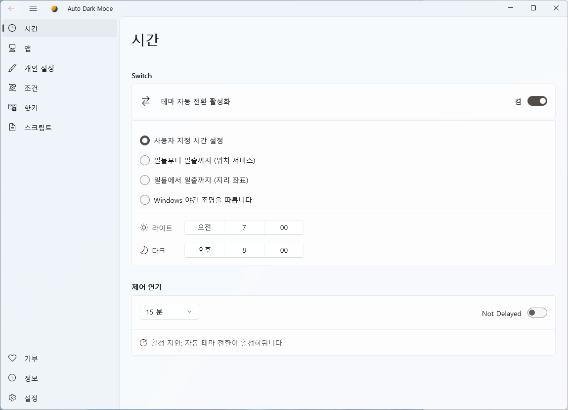 밤에는 어둡게 해뜨면 또 밝게. 윈도우 테마 자동 변경